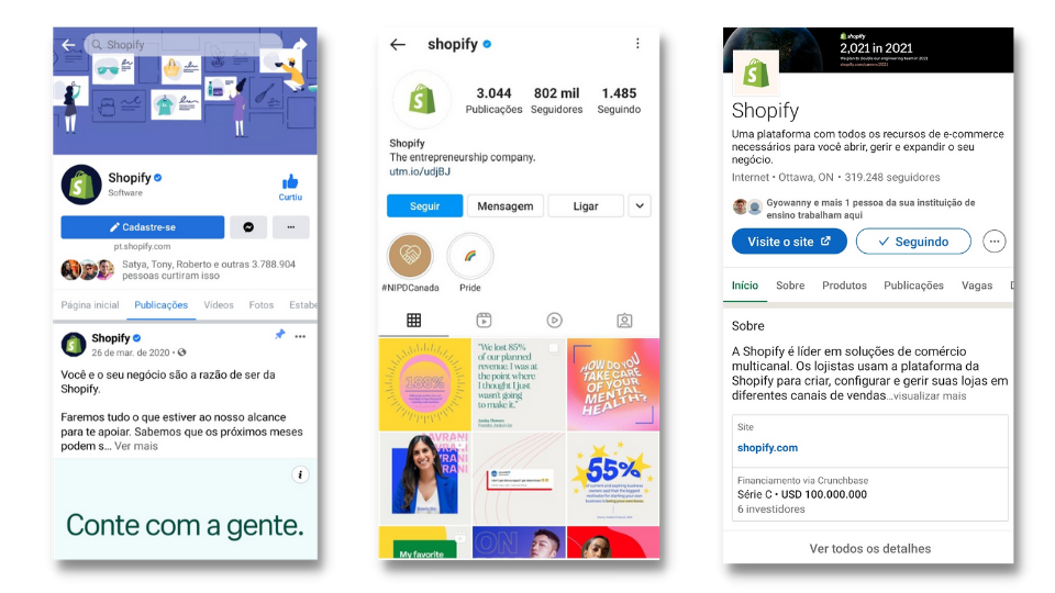 Permitem a realização de postagens por meio de imagens, stories, vídeos, anúncios dos mais diversos formatos, como carrossel, coleção, etc. Alguns exemplos de perfis em redes sociais: Instagram, LinkedIn, Facebook e Twitter.