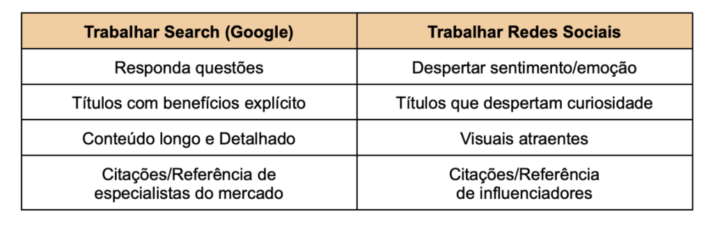 Conteúdo para Search/SEO (Google) é diferente de conteúdo de redes sociais, são 2 mundos diferentes.