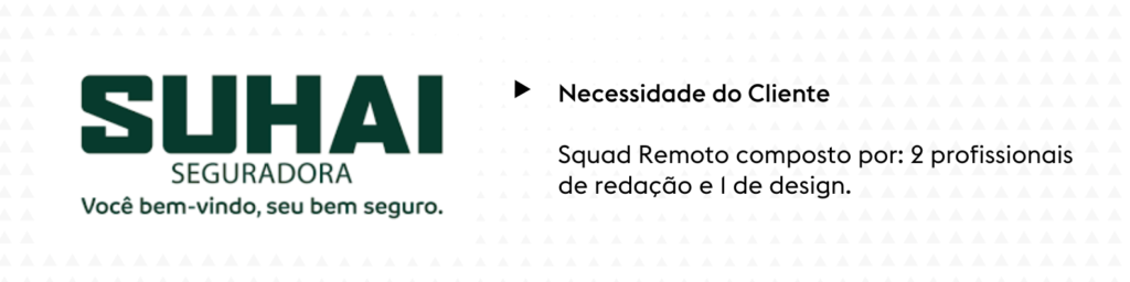 A seguradora Suhai tinha uma demanda bastante clara: 2 profissionais de redação e 1 de design.